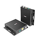Le prolongateur est doté d'une fonction d'alimentation par câble réseau (PoC), qui ne nécessite qu'une seule alimentation pour être connectée soit à l'unité émettrice, soit à l'unité réceptrice. L'émetteur dispose de 2 ports hôtes commutables de type C, dont l'un prend en charge la fonction Power Delivery jusqu'à 100W en connectant une alimentation USB supplémentaire à partir d'un port d'alimentation de type C dédié. Les deux unités ont des ports pour périphériques locaux, 1 Type A et 2 Type A par unité, tandis que le récepteur dispose de 2 ports HDMI® supportant des résolutions Ultra HD jusqu'à 4K60.